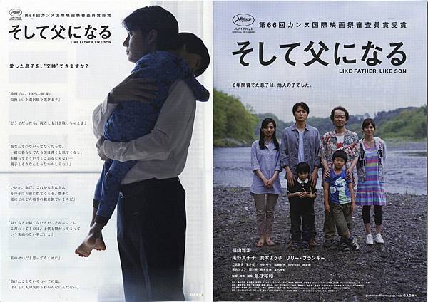 首先,福山雅治超帥的。片子一開始誰都覺得那是令人嚮往的成功的家庭,帥氣又富有,雖然微微地看出有些大男人主義,但妻子依然是溫柔典雅的形象,搭配著有無邪大眼睛的兒子,我想這幅畫面簡直是廣告商的模範,可是看到另一個家庭時,種種的對照會開始動搖原先的認知,一個願意陪孩子玩耍、可以修好一切的爸爸;跟事業有成卻不常陪伴、嚴厲教養望子成龍的父親,說實在我也不知道該投胎去哪個家。在觀影的過程中,內心很想支持福山雅治,然而導演慢慢地讓我們看到在這過程中,過去一切成功模式被打亂的男主角,流露出些許脆弱和柔軟,他甚至改變了自己的態度,學著和孩子玩耍,試著搭帳篷計畫旅行,種種的一切也令他回憶起自己的童年.....