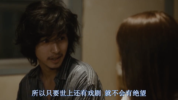 下一刻當牆壁倒塌的時候,我終於懂了這部電影!這整部電影,就是劇場演出,身為創作人,我們都無法在作品中隱藏自己,作品裡有部分真實的我們,也有我所嚮往的美好的結局,當然還有滿滿的遺憾,想得而不可得的所有願望,而每當我抬頭看,那一點點的亮光,我知道那是我的夢想,於是我們如飛蛾般撲火,希冀身邊的人能支持我們,能撐著我們的所有軟弱,能讀懂我們每個沒說的潛台詞,能在我們設定下的舞台指示那樣走位,希望對方是個我理想的角色,我這一刻終於知道為什麼這電影有這麼多的OS,是因為他一直在跟觀眾說一個故事,那個他未能把握的青春、已經離開的愛情,回憶裡的她,像天使一般的美好,而自己卻一次又一次的傷害她,她之所以像天使,是因為我們總是記得對方的好,在對方離去之後,一次又一次的悔恨(如《戀夏500日》),在舞台劇裡,角色會講出所有的獨白,可是現實生活中不會,於是 永田 終於誠實地在戲裡,說了他所有的願景,所有他早該跟女友講、卻沒有講的話