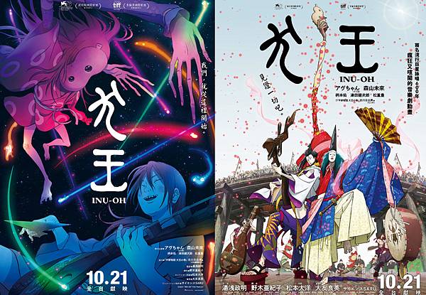 我在完全不知道任何資訊下看這電影,電影開始後便感覺到:欸?這可算是音樂劇呀!(我的本行),雖然不完全是角色以歌舞方式演出劇情,但以歌曲講出亡靈的故事,算是音樂故事的範疇。一開始的音樂都是傳統樂器的曲風,然而為了表現出 犬王 和 友有 的超脫時代的創新感,竟然使用了老美感覺的搖滾樂,犬王 的舞蹈也像融入麥可傑克森的幾個經典動作,看完電影去查資料才看到他們有參考了 皇后合唱團 的風格,難怪。友有 彈琵琶的誇張動作,完全是搖滾樂吉他手solo的動作,古今合一在動畫裡面我覺得非常酷。